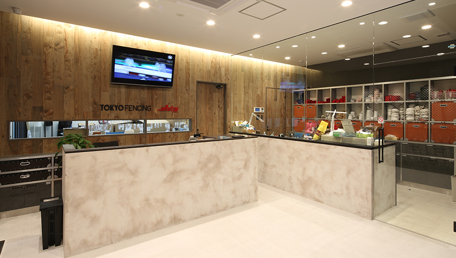 当施設1Fにてフェンシングで使うウェアや、シューズ、カバンなどを取り揃えたショップがございます。